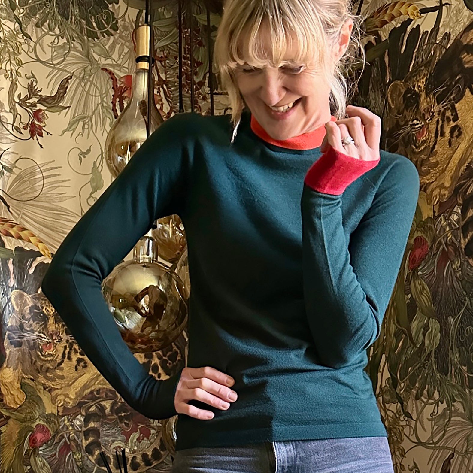 Noir's Second Skin Merino wool jumper's flattering design and luxurious 18 gauge knit make it lightweight but supremely warm. Equally at home in an air conditioned office or plane as it is on a 100km ultra run or dog walk.